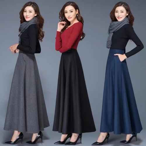 [3] 【毛呢高腰半身大擺裙 三色可選】3入組-NT$1698